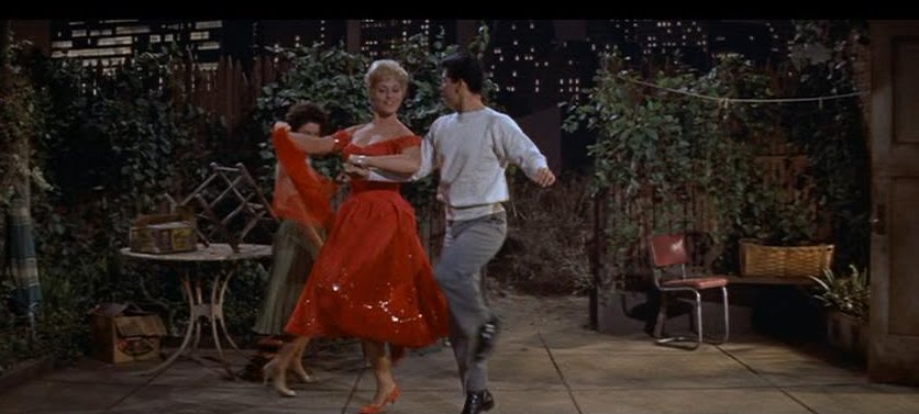 As part of the whole communications theme the film affably satirizes its own conventions. To judge from audience reaction, the moment when an audience of Royal College of Art students finally decided, after some hesitation, that this was a bad film—to be laughed at rather than laughed with—occurred when Ella, in Jeff’s apartment, takes a step or two away from him and begins her musical soliloquy: "Better Than A Dream." Jeff, fired by the new inspiration she has brought, continues typing, not noticing her having burst into song (again: communication-as-separation). But the audience, oddly literalistic about plausibility, even in a musical, laughed incredulously at what is, of course, the moment of friendly self—mockery through which the film reminds us that "this is a film." Communication (as semiologists will remind us) extensively depends on conventions—without which all the unconventionalities of originality would have no purchase, no grip, no community. The convention is doubled up, and simultaneously convulsed and re-established, when Jeff sings to himself simultaneously. And this "separate togetherness" is an inversion of the scene when Jeff, peering morosely into the mirror, fails to con himself into a mood of massive confidence (one man doubled and talking to himself is quite different from two people talking to themselves because they’ve really met). Often enough the film seems theatrical, in the sense that the musical numbers leave us with a general feeling of being done in long-shot, as 0n a stage. And though the real reason may have been a budget-minded studio’s insistence on general shots (sparing all the expense involved in multiple set-ups and more dynamic editing, Singing in the Rain-style), the effect harmonizes with the film’s theme well enough (though possibly precluding it from classic status?). At the end, also, the characters are brought in, in quick succession, as one might bring them on to take their bows at the end of a stage performance. The effect (of a device later paralleled in La Dolce Vita) is of the director's wistful joke about this film being adapted from a Broadway musical. He leaves some of the stage quality inside the film, yielding a tender irony which isn’t quite sad, for even though the flesh-and-blood uniqueness of stage presence has been replaced by celluloid facsimiles, enough of the spirit gets there just the same.